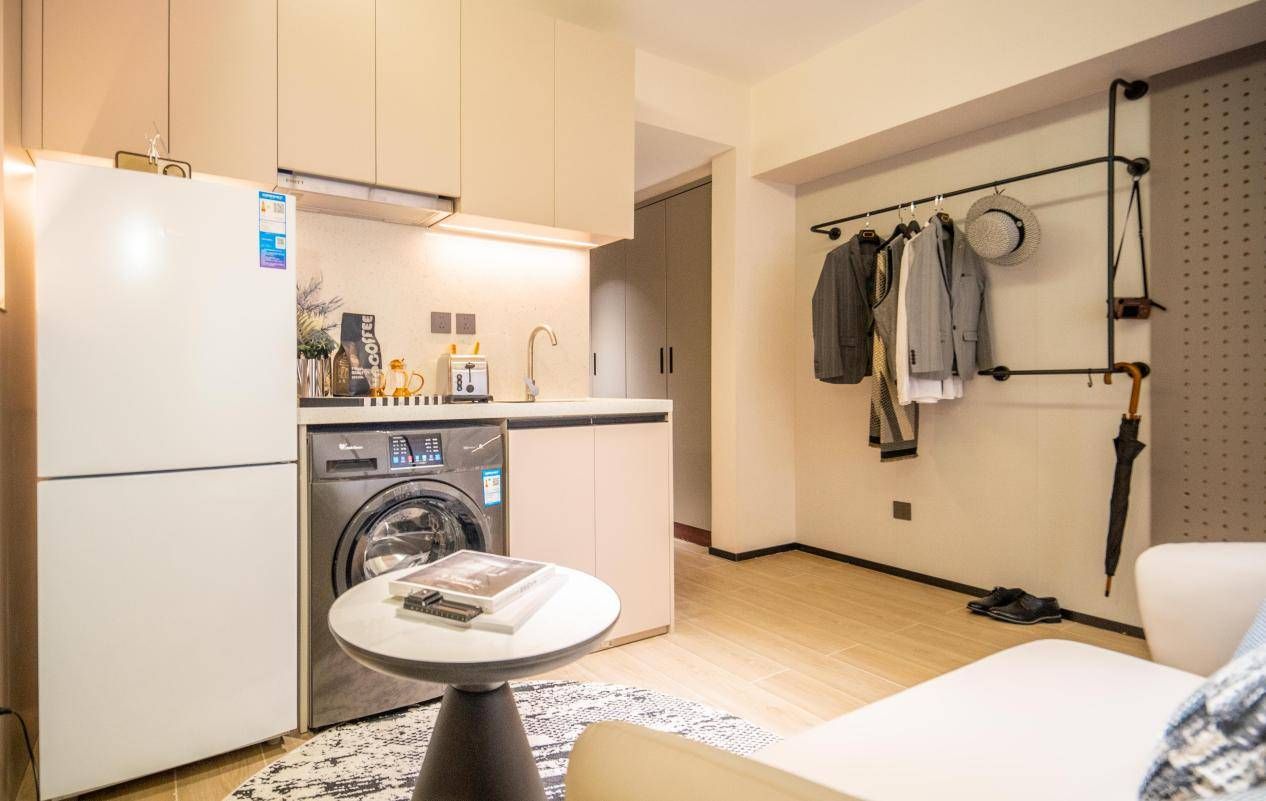室内设计采用简约风格,配备齐全的家电家具,包括洗衣机、冰箱、油烟机 、热水器等基本生活设施 ,实现租客“拎包入住”的便捷体验。